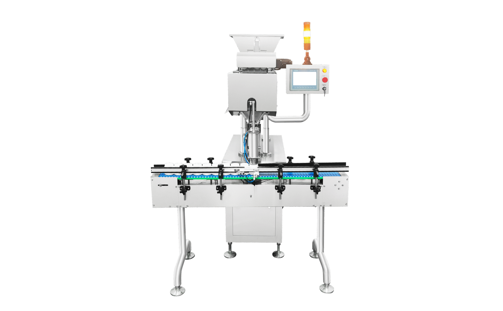 Economy series pill counter machine for counting and bottling of granular materials of various sizes and shapes.
