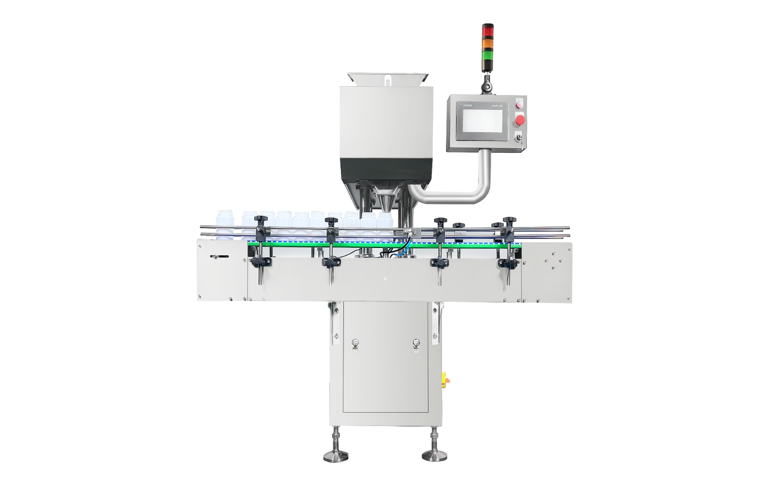 The electronic tablet counter machine of YOKO-8S adopts 8 sets of imported counting sensors for counting with 8 guiding ways and one head. It is widely used in the counting and bottling of solid preparations, such as pills, sugar-coated tablets, plain tablets, soft and hard capsules, and other shaped tablets.