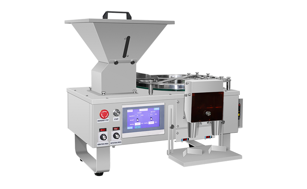 Semi automatic counting machines for small and medium production scale, tablets, capsules, gummies and other related granules are applicable.