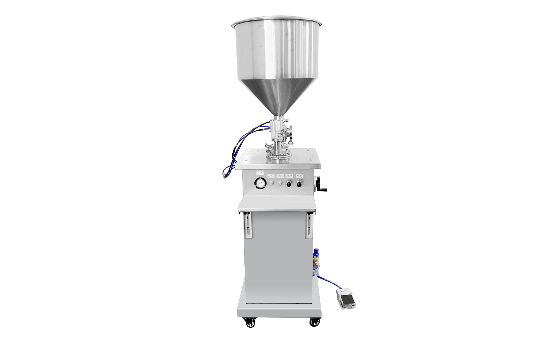 Semi-automatic vertical multifunctional syringe filling, apply for small scale production.