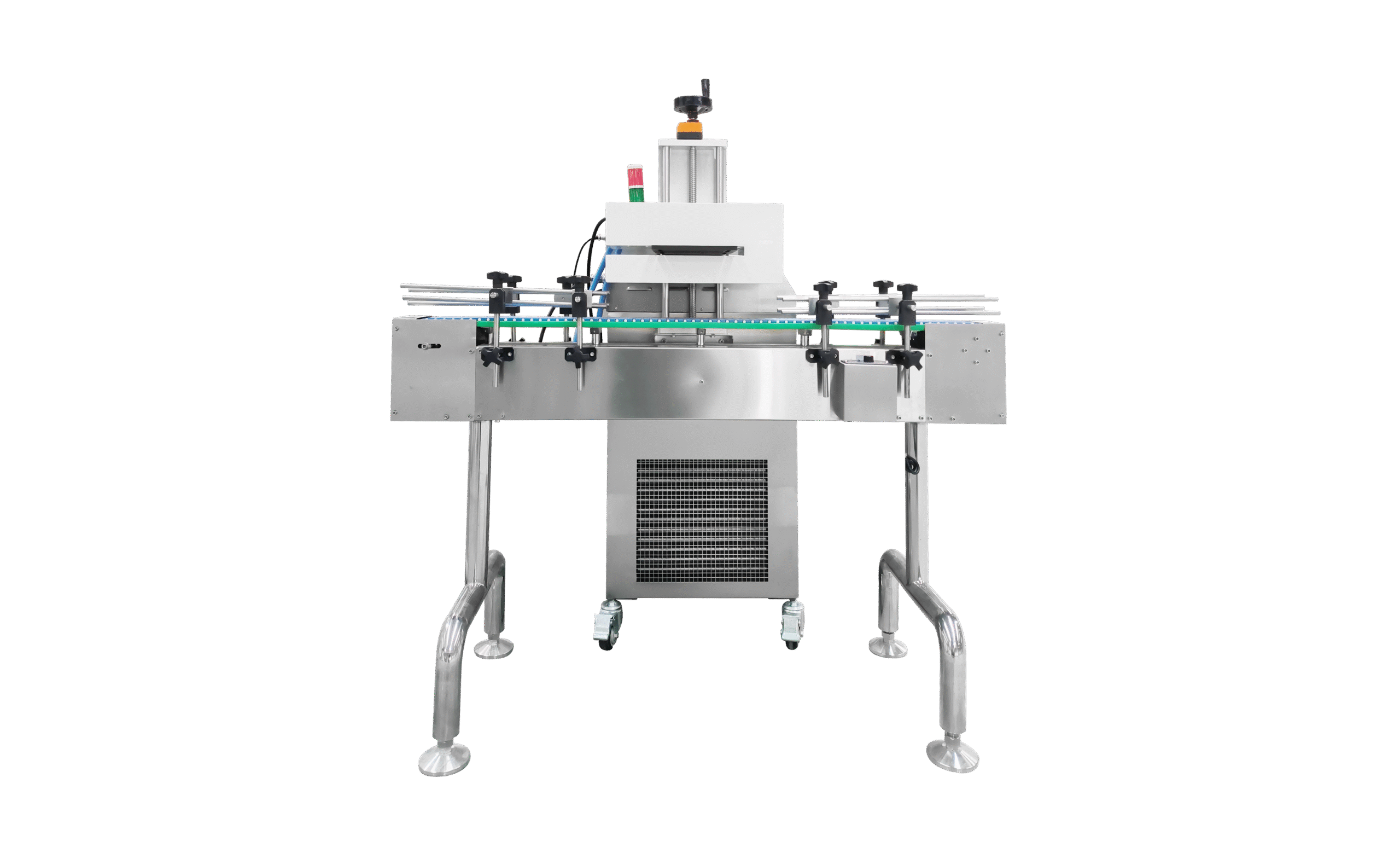 Water-cooled electromagnetic induction aluminum foil sealing machine for various bottles.