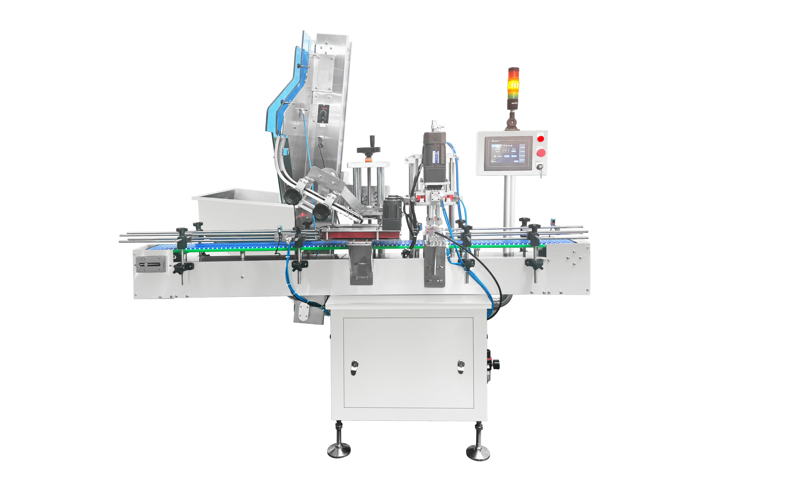 YOKO-SXL automatic cap tightening machine features a specialized 4-wheel mechanism for precise cap fixing and sealing. Engineered for versatility, it handles spray heads, pump heads, duckbill caps, and standard round caps with ease. With a maximum capacity of 2,400 bottles per hour, the system offers fully adjustable capping speeds and torque settings to ensure consistent tightness across various specifications.